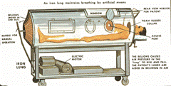 I had another childhood friend who was in an iron lung. That was his whole world as a child. I lost contact with him when I was eight, but I presume that he lived a reasonably long life afterwards. Since then, the clunky iron lung was replaced by a tube inserted into the neck, allowing for more mobility, and no more are iron lungs are being manufactured, although they are still used for people who have spinal deformities. When one is needed, they quickly repair it and put it into service.